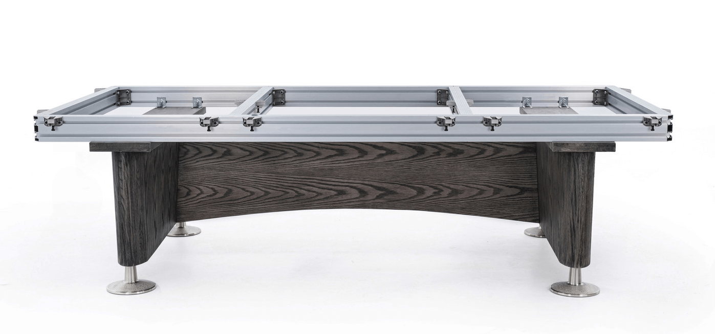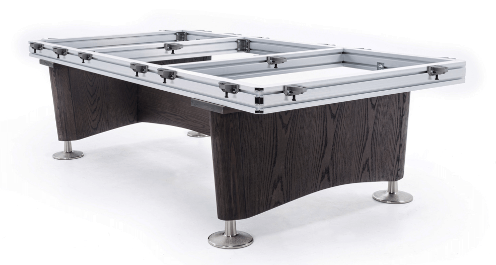 Опорная рама для плиты из балок, сделанная из промышленного алюминия. Конструкция удобно устанавливается, отвечает за превосходную стабильность стола и обеспечивает крепкое основание для сланца. Опорная рама запатентована компанией Rasson.