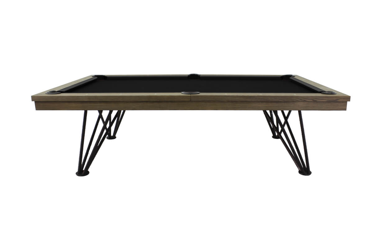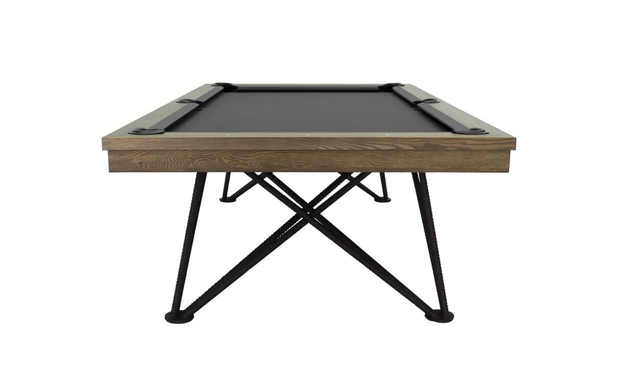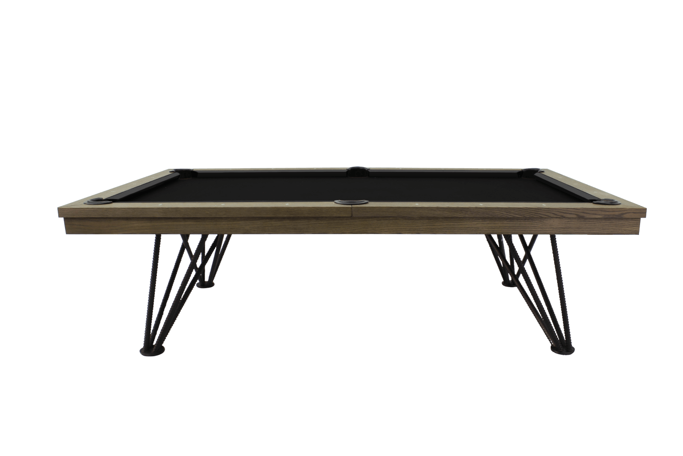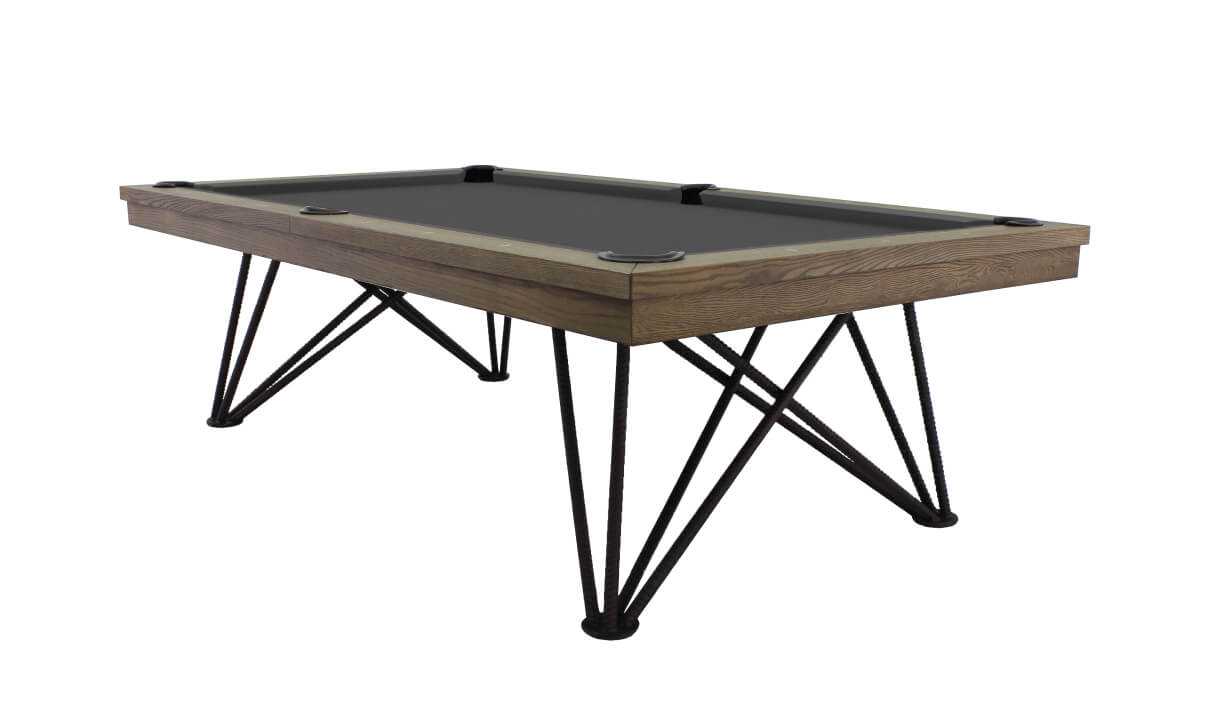 Стол сделан из древесины твердых пород, с металлической рамой и имеет фантастический современный дизайн, который будет интересно смотреться в различных интерьерах. Лузы с накладками из кожи.