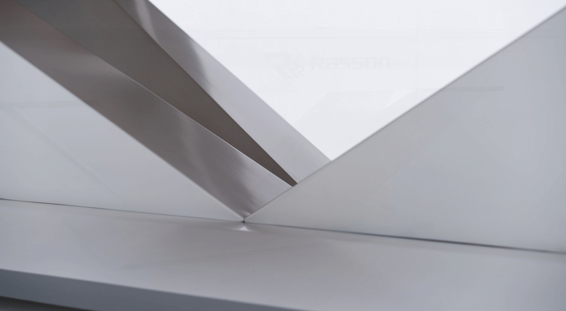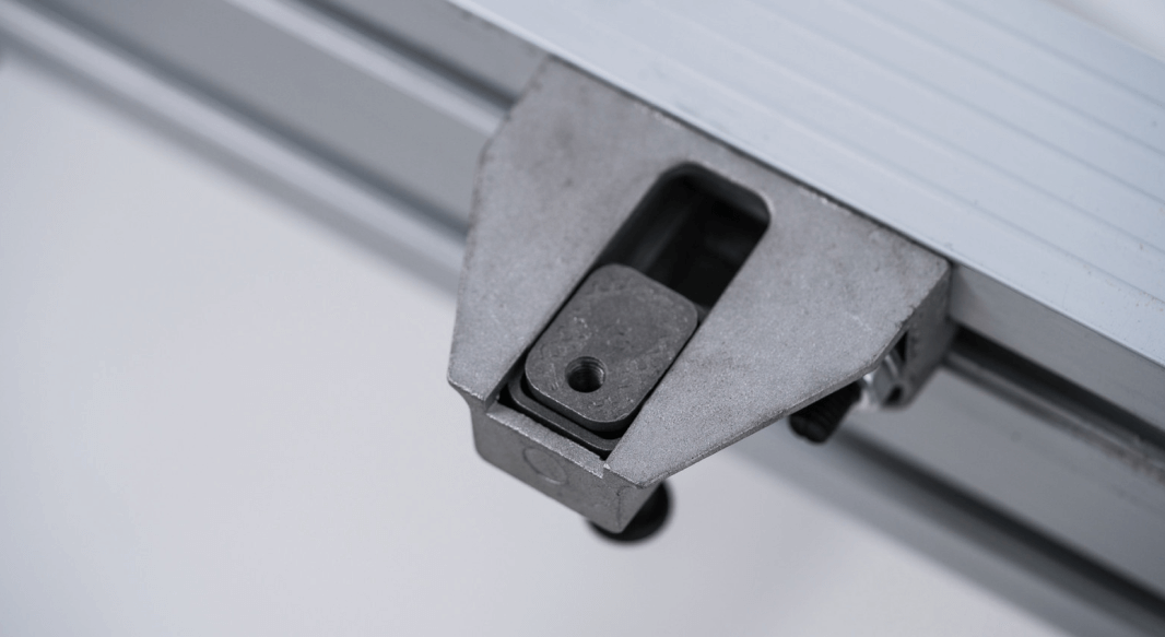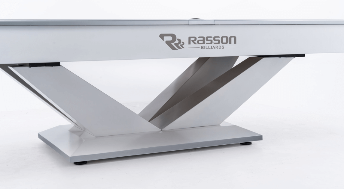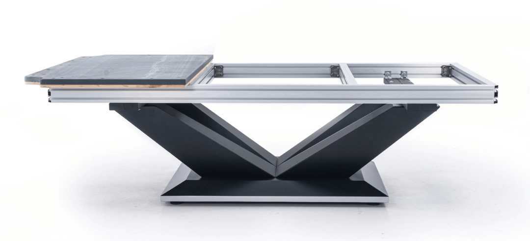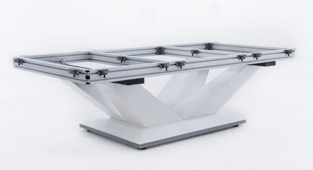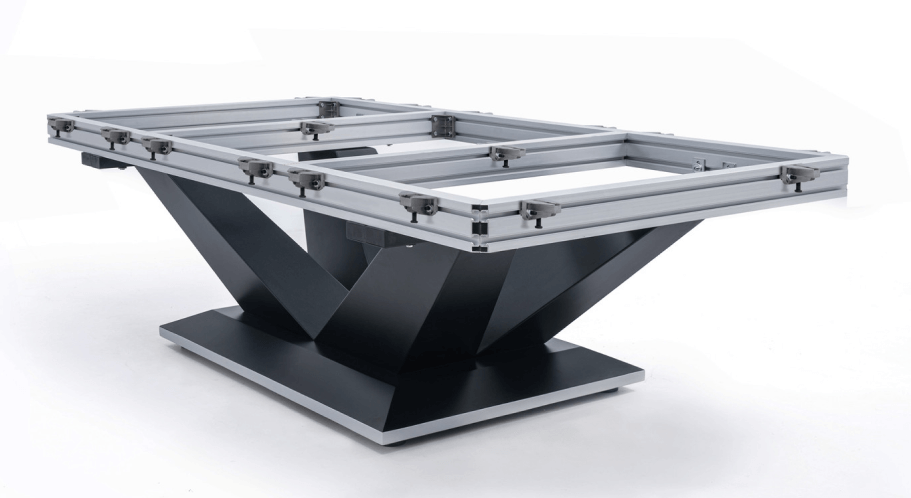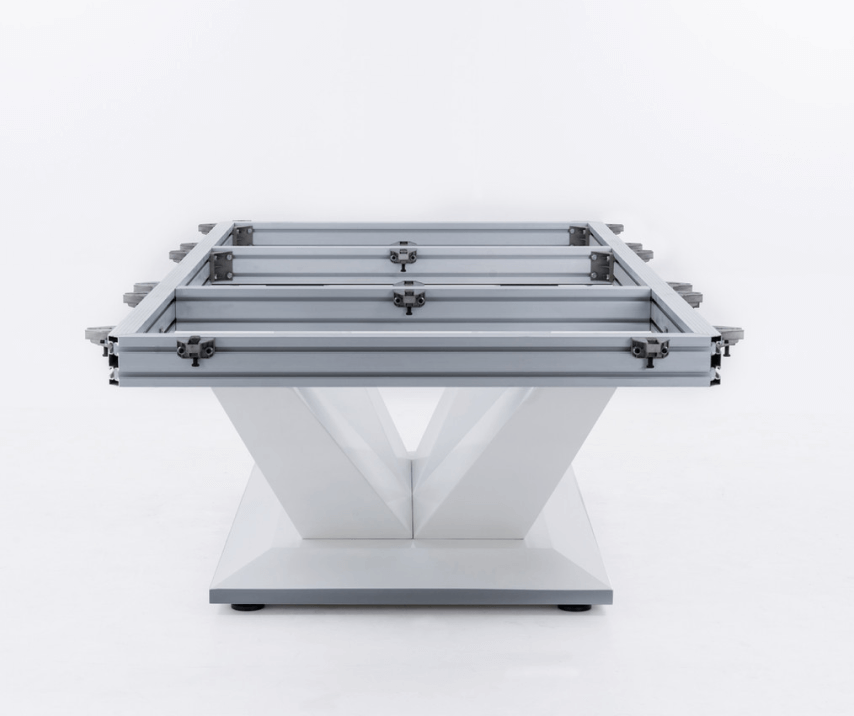 Опорная рама для плиты из балок, сделанная из промышленного алюминия. Конструкция удобно устанавливается, отвечает за превосходную стабильность стола и обеспечивает крепкое основание для сланца. Опорная рама запатентована компанией Rasson.