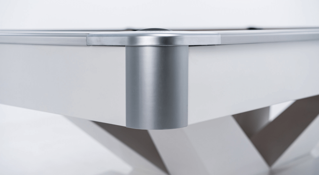 Лузы из термопластичного эластомера. Этот материал намного ближе к силиконам по свойствам, чем к пластикам и резине. Вообще, запатентованы не сами лузы, а Т-образный паз, который позволяет быстро и легко монтировать стаканы. Термопластичный эластомер поглощает звуки и обладает высокими амортизирующими параметрами. Вместимость луз — 10 шаров.